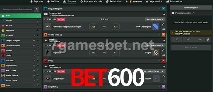 O Bet600 oferece uma grande seleção de opções de apostas em e-sports com probabilidades competitivas